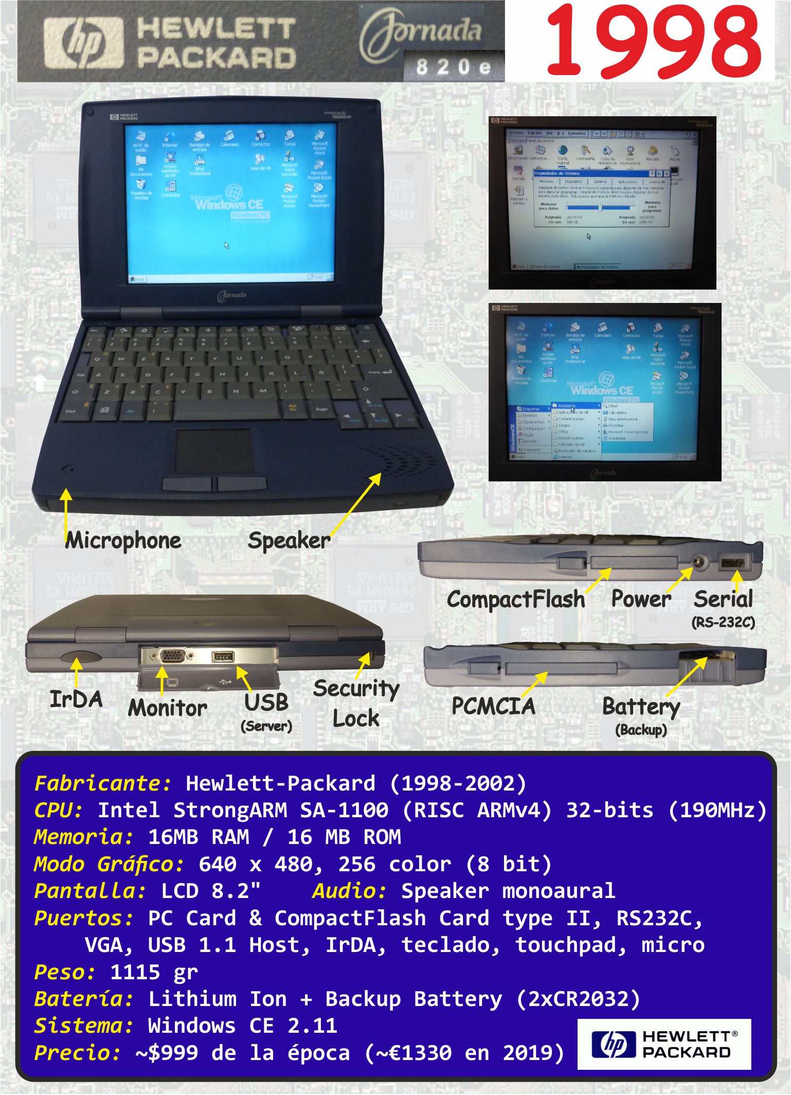 | Puertos: | PC Card & CompactFlash Card type II, RS232C, VGA, USB 1.1 Host, IrDA, teclado, touchpad, micro |